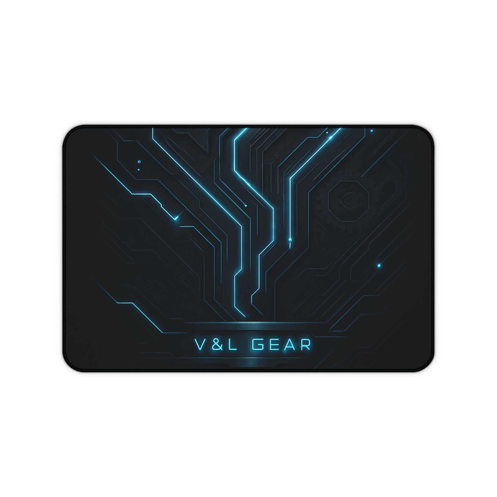 The Desk Mat from V&L Gear combines futuristic design and technology to elevate your gaming experience. Inspired by cyberpunk aesthetics, this mat features a dark background with neon blue details and technological patterns that exude power, precision, and style. Perfect for gamers and tech enthusiasts, this desk mat is relevant for gaming events, tech conventions, and futuristic-themed celebrations.